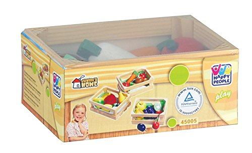 Sieht aus wie echt! Das Happy People Holzobst und Gemüse im Holzkorb ist eine tolle Ergänzung für Deinen Kaufladen oder Spielküche! Lieferumfang: 1 Stück