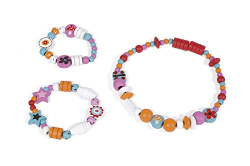 Holzspielzeug. Bastelspiel aus Holz. Geeignet für Kinder von 5-10 Jahren. Ein Sortiment von 250 Holzperlen in unterschiedlichen Größen und Formen in vielen zarten Tönen. Liebevoll verpackt in einer türkisfarbenen-farbenen Box in Herzform aus Karton. Mit Minuschka-Motiv. Komplett im Set mit 6 unterschiedlichen Fäden, 6x Verschlüssen, 1 Nadel und 1 Einfädelungshilfe.