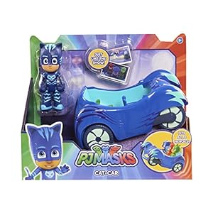 Pounce into action with Catboy and his Cat-Car! The PJ Masks Catboy Figure and Vehicle Assortment comes with a 3 inch articulated Catboy figure and his signature stealthy vehicle, the Cat-Car! Roar „into the night to save the day“ as you roll the Cat-Car with Catboy inside! The car can even fit all three PJ Masks 3 inch Figures! Collect the rest of the Figure and Vehicle Assortments including Owlette and Owl Glider and Gekko and Gekko-Mobile for the ultimate PJ Masks experience. Each sold separately.