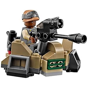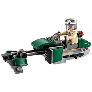 Enthält ein Speeder-Bike mit Blaster-Halterung und Platz für eine Minifigur sowie einen Schützengraben mit frei drehbarer Laserkanone samt Shooter und zusätzlicher Munition