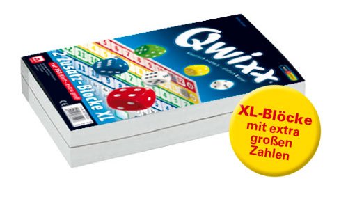 Dieser Block ist doppelt so groß (DIN A6) wie der normale Qwixx-Spielblock.