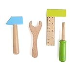 Mit diesem bunten Werkzeug-Gürtel haben kleine Handwerker alles parat, was sie zur Reparatur brauchen: Lineal, Schraubendreher, Hammer, Gabelschlüssel, drei Schrauben und fünf Muttern, alles besteht aus massivem Holz und ist farbenfroh lackiert. Die Klickschnalle des stabilen Nylon-Gürtels lässt sich rasch öffnen und wieder schließen.